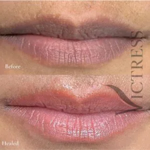 When performed by trained professionals, lip blushing is very safe. Victress Beauty Lounge uses sterilised tools and high-quality pigments to prevent infections. Clients are advised to discuss any allergies or medical conditions beforehand to ensure the safest possible experience.